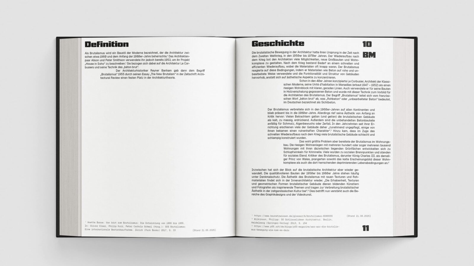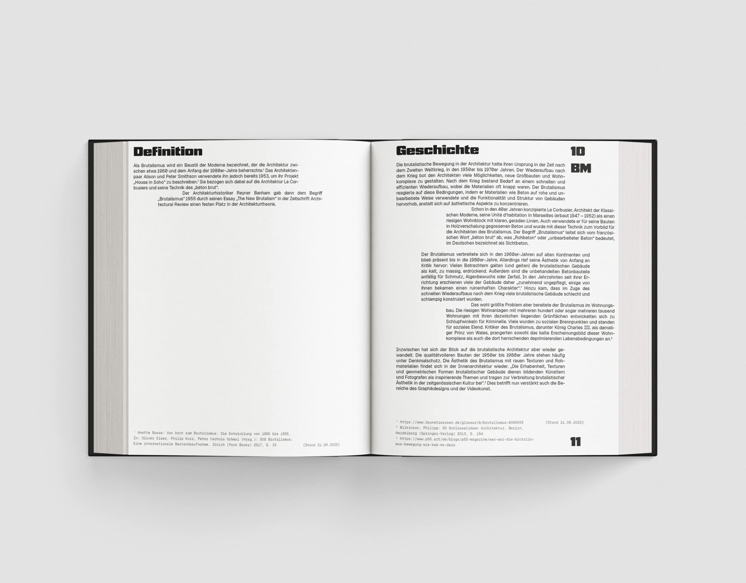 Das Projekt „Brutalismus in Indie Games“ bildet eine analoge und digitale Sammlung von ausschließlich Indie Games, die sich auf unterschiedliche Weise mit dem Baustil Brutalismus auseinandersetzen. Um Einblicke in die kreative Denk- und Arbeitsweise von Spielentwickler:innen und Künstler:innen zu geben, enthält das Projekt Interviews mit Kreativen aus der Videospielindustrie. Die Medien Druck und Videospiel werden durch ein Buch und eine parallel entwickelte digitale Anwendung vereint. Eine Bildstrecke und ein interaktives Spiel geben die Möglichkeit, in die Welten der Indie Games einzutauchen. Das Projekt informiert über den Brutalismus und zeigt, welche Kunstwerke mit dem Medium Videospiel geschaffen werden können.