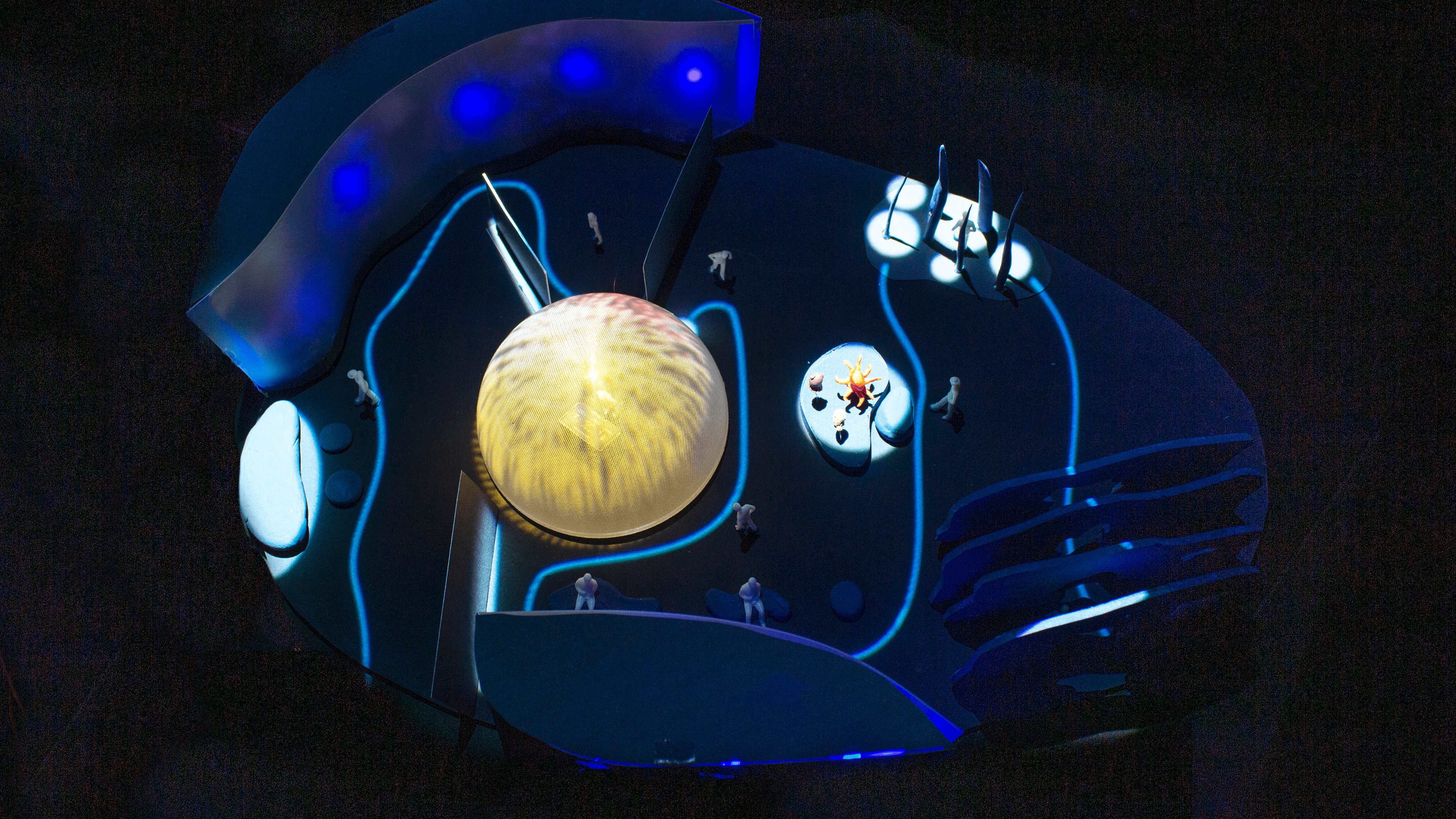 Die Ausstellungsstation „Chromatophoria“ macht den Farbwechsel des Oktopus interaktiv erlebbar und vermittelt gleichzeitig Informationen dazu. Der Oktopus steuert die Farbe und Muster seiner Haut durch seine Hirnaktivität. Der Bewusstseinszustand spiegelt sich auf seiner Haut wider. An der Ausstellungsstation kann dieses Phänomen nachempfunden werden, indem Besuchende selbst ein Muster mit ihren Hirnströmen steuern können. Dazu kann ein EEG-Headset aufgesetzt werden, das die Hirnströme misst. Je nach Grad der Entspannung und Konzentration verändert sich das Muster. Dieses wird auf eine halbtransparente Kuppel projiziert, in der sich die Station befindet. Auf einer illustrierten Infografik kann man Details des Farbwechsels nachlesen. Zudem wurden weitere mögliche Ausstellungsstationen zum Überthema des Oktopus skizziert. „Chromatophoria“ vermittelt Erkenntnisse der Hirnforschung als interaktives Erlebnis.