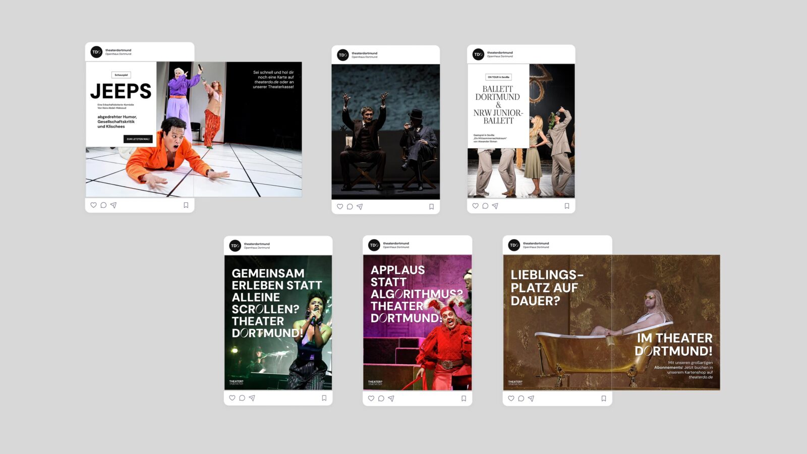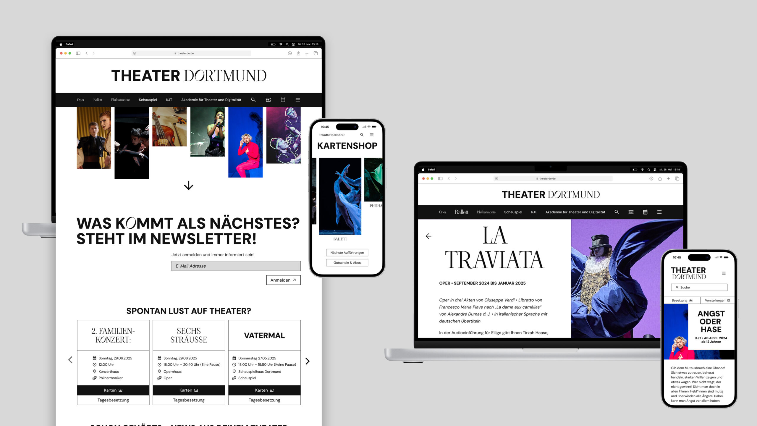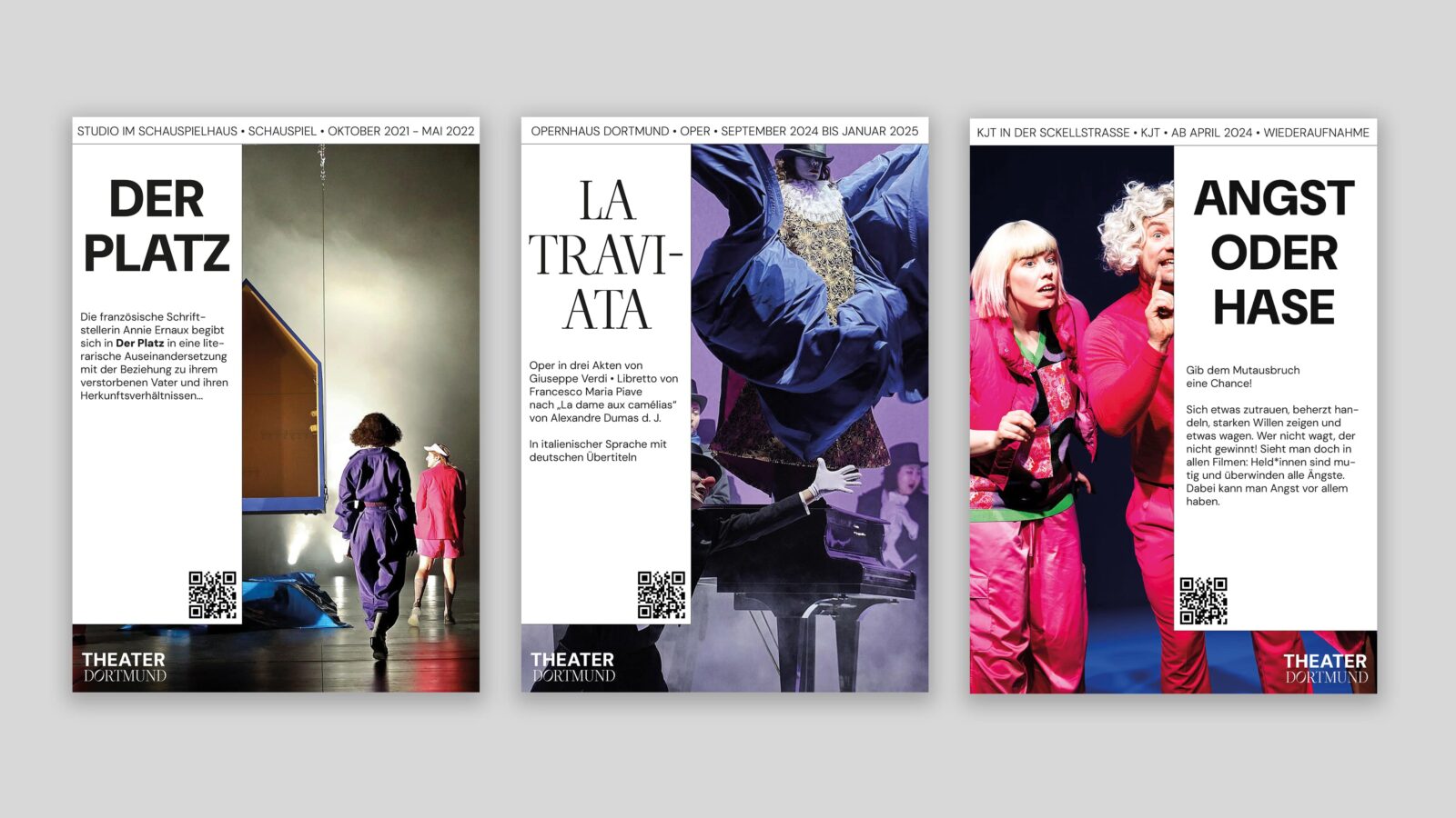 Das Theater Dortmund zählt zu den bedeutendsten Bühnenhäusern Nordrhein-Westfalens und bespielt mit seinen sechs Sparten ein vielfältiges Publikum. Ziel der Arbeit ist die Entwicklung eines neuen, crossmedialen Corporate Designs, das das Haus als modernes, offenes Stadttheater sichtbar macht. Kern der Gestaltung ist ein flexibles System, das mit Vorhangelementen, auffälliger Typografie und dynamischer Bildsprache neugierig macht und Lust auf Theater weckt – bunt statt bieder, zugänglich statt elitär. Für Digitales wie Analoges gleichermaßen gedacht, wird so ein prägnantes, zeitgemäßes Erscheinungsbild geschaffen. Die begleitende Kampagne „Theater? Dortmund!“ positioniert das Haus aufmerksamkeitsstark, modern und publikumsnah.