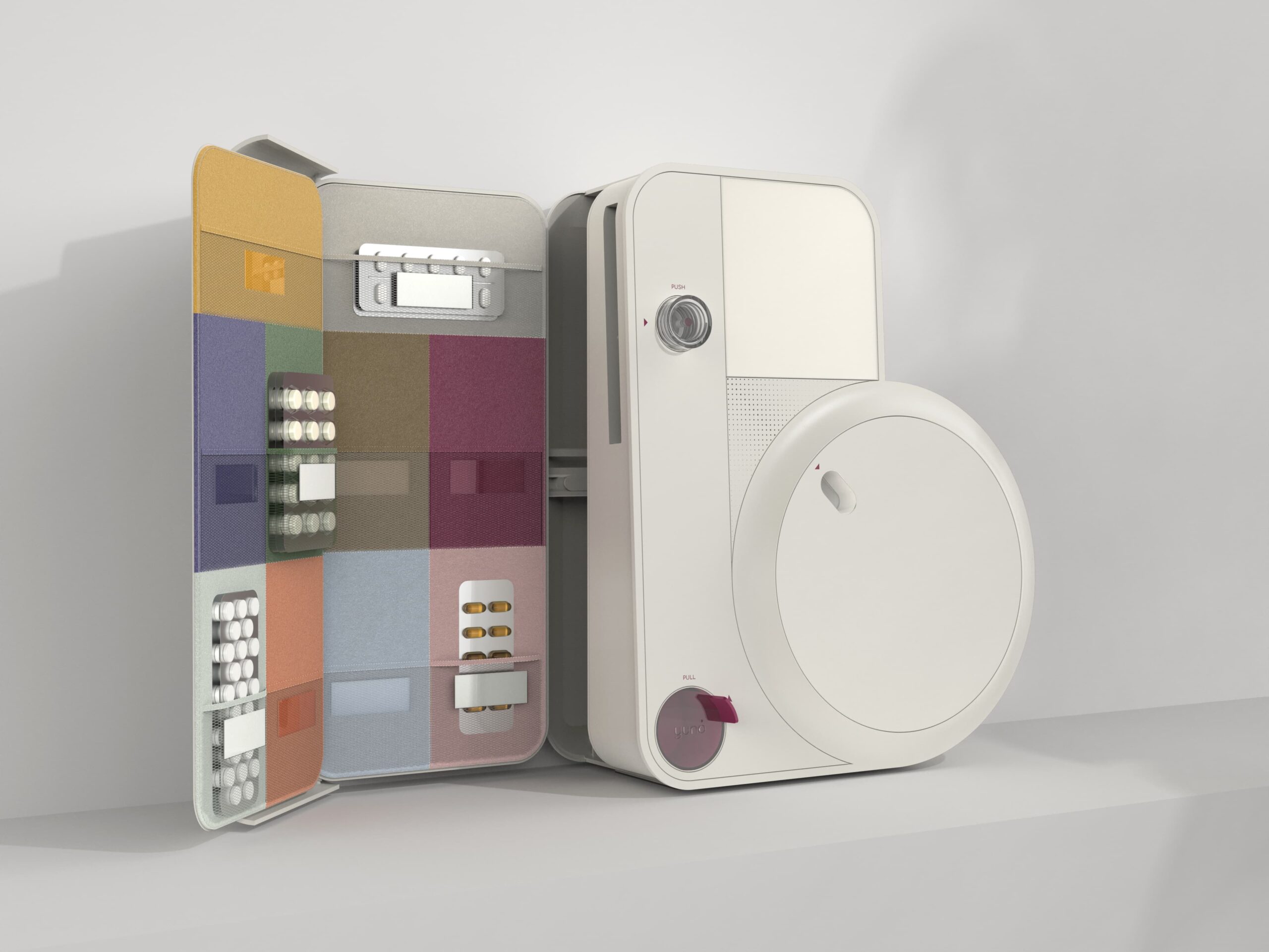 Mit der Zunahme chronischer Erkrankungen gewinnt Medikationsmanagement im häuslichen Umfeld an Relevanz. Besonders ältere Menschen, Menschen mit psychischen Erkrankungen oder mit sehr komplexen Medikationsplänen stoßen im Umgang mit ihrer Medikation im Alltag oft auf verschiedene organisatorische, aber auch psychische Herausforderungen. Yuno ist ein innovatives Medikationsmanagementsystem, das die tägliche Medikamenteneinnahme vereinfacht, Medikationsfehler reduziert und die Therapietreue der Nutzer:innen unterstützt. Es organisiert die korrekte Lagerung der Medikamente, ermöglicht durch eine integrierte Entblisterhilfe die Entnahme der Tabletten aus ihren Blistern und dokumentiert Einnahmedaten, die bei Bedarf geteilt werden können. Yuno entlastet so im Alltag und schafft mehr Transparenz, Mobilität, Sicherheit und Vertrauen im Umgang mit der eigenen Medikation.