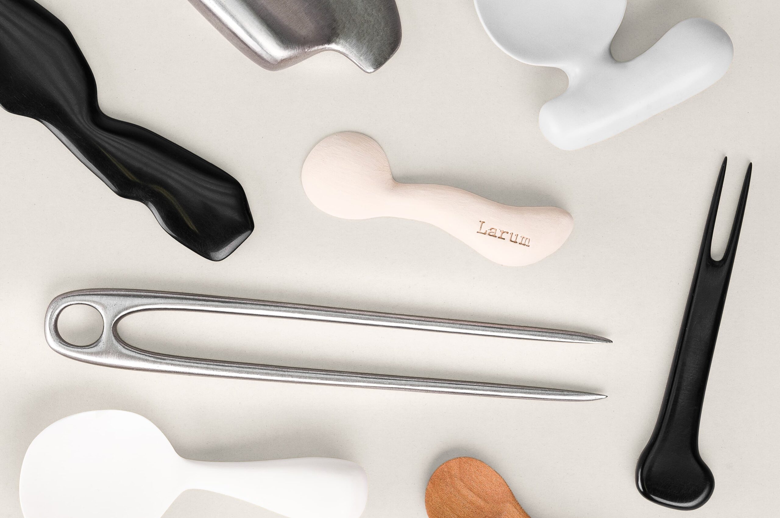 Die Art des Essens in der heutigen Zeit ist zunehmend von Hektik und mobiler Lebensweise geprägt. Formalität und Bewusstsein für die Mahlzeit verlieren an Bedeutung. Larum soll einen Ansatz darstellen, der sich kritisch mit der gegenwärtigen Esskultur auseinandersetzt und achtsames Essen fördert. Der Entwurf folgt dem Gedanken „Rückbesinnung auf das Wesentliche“ und orientiert sich an der Zeit, in der Mahlzeiten einen deutlich höheren Stellenwert hatten. Als Vorbilder dienen daher die ersten Essgeräte des Menschen. Larum soll nicht als standardisierte Begleitung der Nahrungsaufnahme verstanden werden, sondern als aktives Gestaltungselement, das Aufmerksamkeit erfordert und eine stärkere Wahrnehmung des Essens und des Moments ermöglicht.
