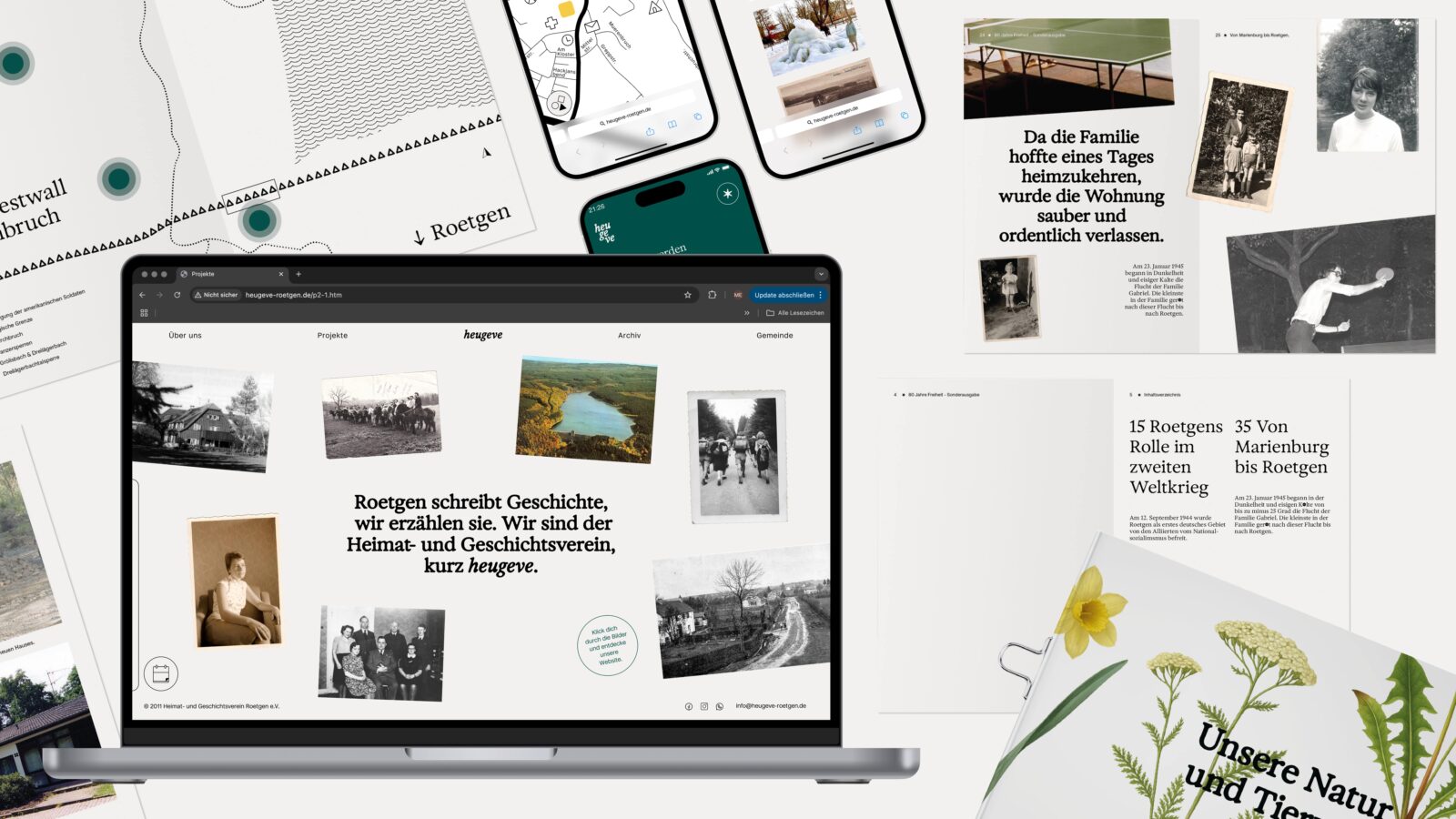 Was macht ein Heimat- und Geschichtsverein eigentlich? Er forscht, dokumentiert, archiviert – und bewahrt Geschichte. Ehrenamtlich setzen sich die Mitglieder dafür ein, dass Erinnerungen nicht verloren gehen und lokale Identität lebendig bleibt. Doch häufig wird der Wert dieser Arbeit nach außen kaum sichtbar. So auch beim Heimat- und Geschichtsverein Roetgen (heugeve). Im Rahmen dieser Bachelorarbeit wurde deshalb ein neues Gestaltungskonzept entwickelt: Im Fokus stehen eine interaktive Website, ein vierteljährliches Geschichtsmagazin sowie ein ergänzender Podcast als neues Medium – alles mit dem Ziel, die Relevanz des Vereins zu stärken und auch jüngere Zielgruppen zu erreichen.